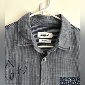 DESIGUAL Stripe Embroidered Shirt with Contrasting Pocket | Small | Unisex |