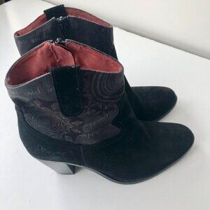 DESIGUAL Suede Ankle Boot Western Boho Style Black Grey Design Pink EU 39/US 8.5