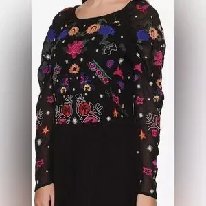 Floral embroideries along the top front
