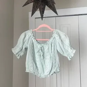 AMERICAN EAGLE Women’s Detailed Cropped Top - Worn on or off the Shoulders