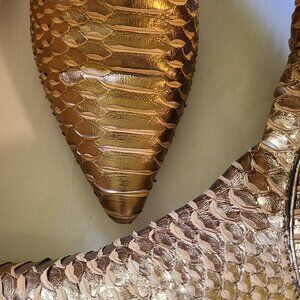 Beautiful gold authentic python snakeskin boots by Devi Kroell.