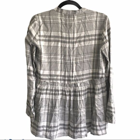 DEX Cotton Plaid Button Front Peplum Blouse Grey XS