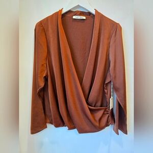 DEX Elegant Brown Wrap Top Long Sleeve Ruched Size XL X