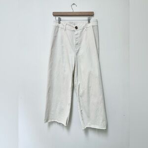 High Rise Culotte Denim - the perfect blend of style and comfort! These cream-colored culottes feature a flattering high rise, wide leg design, and cropped length for a trendy look. Elevate your wardrobe with this playful and versatile addition!
