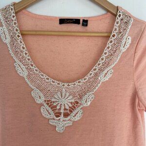 DEX Peach Colour Cap Sleeve V-Neck Top with Embroidery Womens Size Small