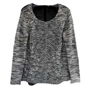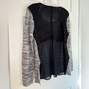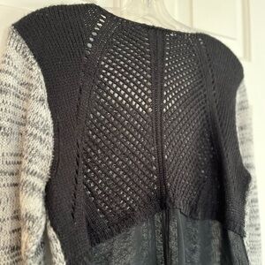 Gray Black Open Knit DEX Contrast Chiffon Back Pullover Scoop Neck Sweater Large