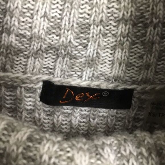 DEX wool blend chunky knit sweater turtleneck long silver grey white oversize XS