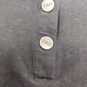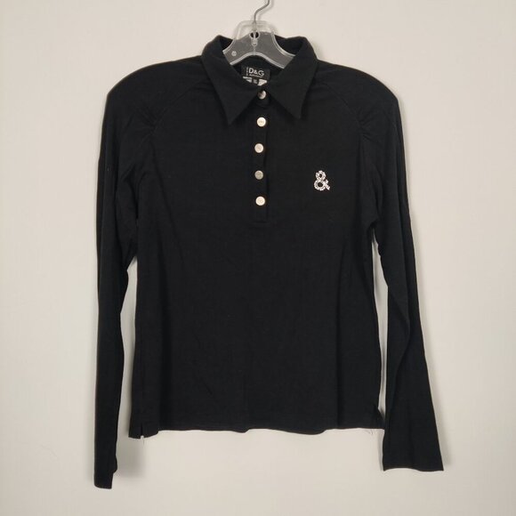 D&G Women's Long Sleeve Polo Shirt in Black Beaded LOGO 100% Cotton Y2K