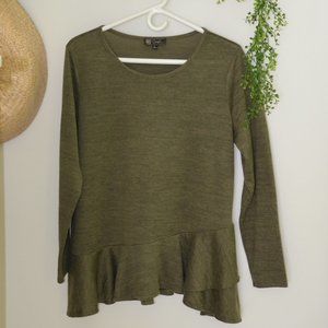 DG2 Diane Gilman Brushed Jersey Knit Green Peplum Top Womens Size L