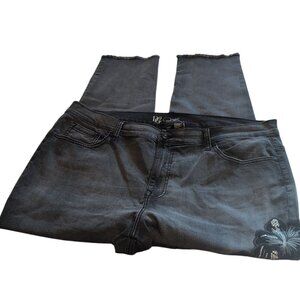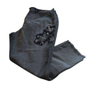 DG2 Diane Gilman Jeans Floral Embroidered Floral on Leg in a Black Wash Skinny