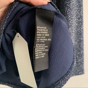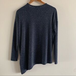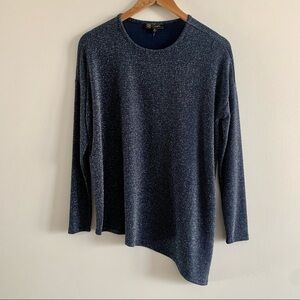 DIANE GILMAN Angled Hem Bateau Neck Top Eggplant Long Sleeve Blue Glitter