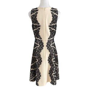 DIANE VON FURSTENBERG DANIELLA BEIGE BLACK LACE SHEATH DRESS, Diane Von Furstenberg Fit & Flare Daniella Lace Panel Mini Dress Cream Black, This is a chic, classic yet moder two-tone cream and scalloped black lace panel sheath dress, above the knee length - lined - mix of crepe and scuba drapy fabric - sleeveless - back zipper fastening - round neckline, formal / party /cocktail evenign dress, perfect for the holiday's, fancy dinner at restaurant, birthday party and more. Versatile and neutral.