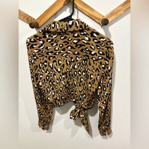 DIANE VON FURSTENBERG Shirt Womens Brown Whitman Leopard Print Silk Wrap Top