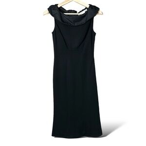 In very good pre owned condition. Unlined. Hidden side zipper. Silk Cowl neck collar with silk trim cutout in back. Photos are important so please check all for condition, detail and measurements.