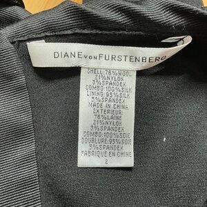 DIANE VON FURSTENBERG Wool Blend Black Dress 100% Silk Trim Side Zipper US Sz 2