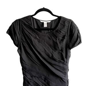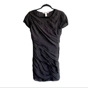 DIANE Von FURSTENBERG Black Silk Ruched Short Sleeve Mini Dress