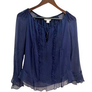 DIANE von FURSTENBURG Navy Peasant Long Sleeve Sheer Blouse Size S