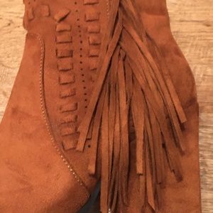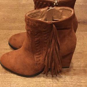 Stylish pair of Diba suede ankle boots with tassels. Warm cinnamon color. Size 6. Never been worn.