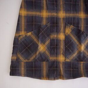 DICKIES Plaid Bib Overall Dress Mustard Yellow Navy Blue Clueless Style XS
