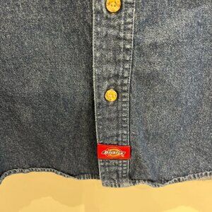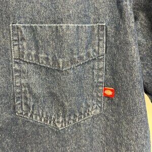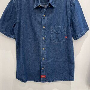Up your denim game with Dickies’ Short Sleeve Denim Shirt. Box pleated for a more professional look, this denim shirt has a pocket for storing personal items. This workwear classic is perfect on or off the job, and will look best paired with khaki or twill pants. There is 2½” fuller through the shoulders and chest than the regular fit, so you have room to move in comfort.