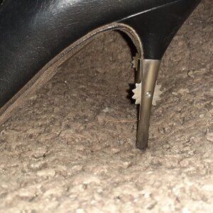 DIESEL BLACK LABEL-Black Leather Scallop Edge Pumps-Steel Spur Heel-Sz 38-EX