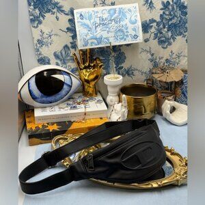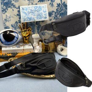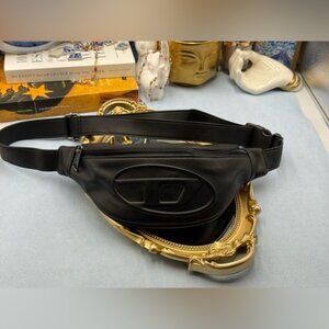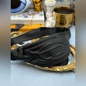 🆕 DIESEL 🧿 NWOT Black Koinbe Embossed-Logo Belt Bag, Black PU Vegan Leather
