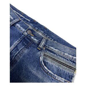 DIESEL Raw Edge Trim Designer Straight Fit Denim Jeans Black Blue Mens 36x32