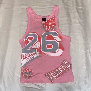 Super Cute Diesel Tank Top in Pink with 'Trash Island 26' graphic design