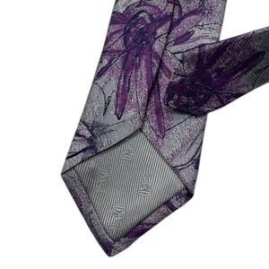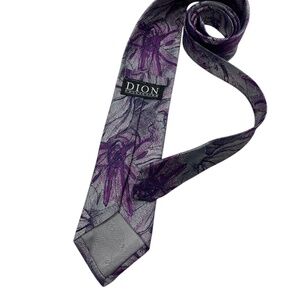 DION COLLECTION Purple/Gray Floral Silk DESIGNER Tie HANDMADE CANADA