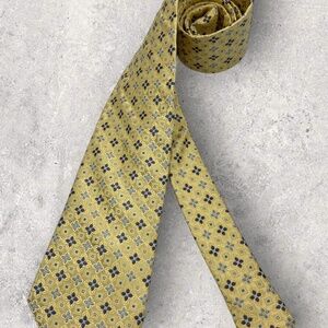 DION Gold/Blue Geometric Floral Silk LUXURY Tie HANDMADE CANADA
