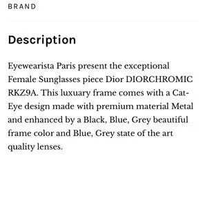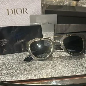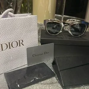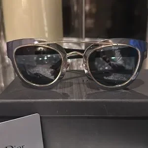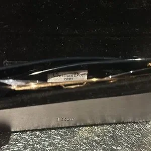 Just fabulous Dior frames!! Great colour combo! Gold/Chrome/black with blue/gray lenses. Excellent condition-I can’t find a scratch. Comes with box/Dior wipe: Original case/authenticity card and Dior bag