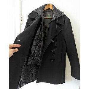 Very warm pea coat from Dirk Bikkembergs Sport's line. Liner and hood are removable.
