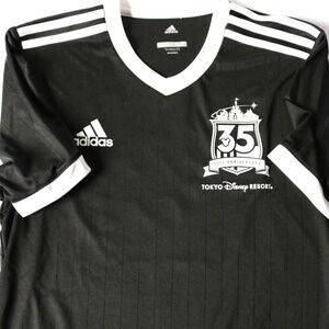 Adidas & Tokyo Disneyland Resort 35th anniversary soccer shirt. Black with white details on front and back, size large (Japanese L but fits like a US S-M). Approximate measurements: 27" long and 19" across the chest (pit to pit). Pre-owned but in excellent condition. NOTE: there is one tiny white mark on front of shirt (right bottom), but hardly noticeable and probably will come out with a wash. Smoke-free, pet friendly home!