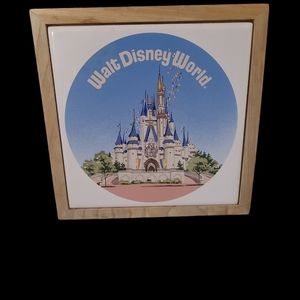 DISNEY Disneyland Castle Themed Wood Framed Ceramic Tile Trivet 6 3/4" x 6 3/4"