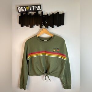 DISNEY Hakuna Matata Cropped Shirt Olive Green Juniors Size Large Front Tie