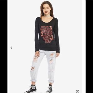 This black sweater from Disney's Mulan features Mushu dishonoring just about everything. The back features crisscross detailing.