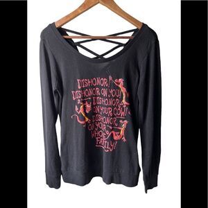 DISNEY Mulan Mushu Dishonor Crisscross Back Sweater size medium