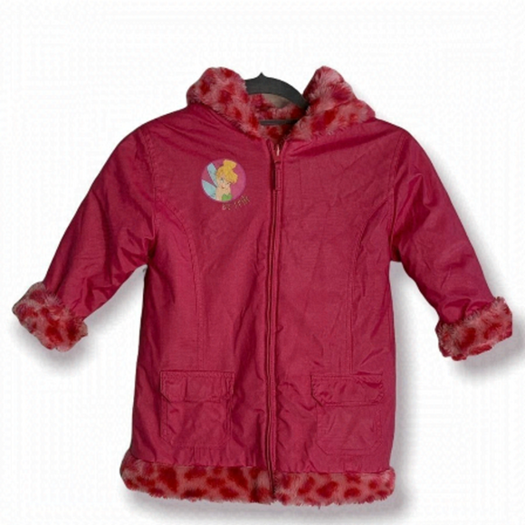 Hat a cute jacket! One side is faux fur for the extra cozy feel and the other side is water repellent with Tinker Bell on the front and a larger one on the back. Very good condition. Some wear on the graphic as seen in photo. Super fun. Size 5.