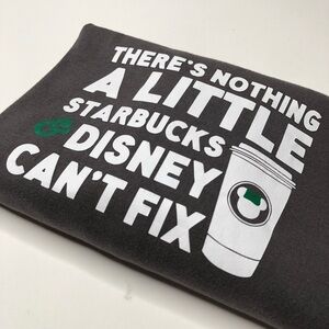 Anvil gray graphic t-shirt with the words “There’s nothing a little Starbucks & Disney can’t fix” written in white on the front. Perfect for the Disney & Starbucks lover! Accented with green "&" sign and Minnie's bow. In perfect used condition with no flaws or cracking to the graphic. Please see photos for details and measurements. Women’s size 2X.