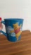 Disney Store mug depicts Winnie the Pooh in a 3D embossed design. Tapered design. Red top has a metallic effect. Spell out of "Pooh" with clouds. Dishwasher and microwave safe.