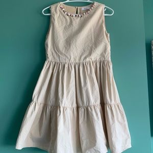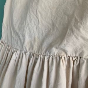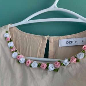 Attached some satin rosettes to the collar for a more cottagecore look. Small speckle to the left side of rosettes. Faint discoloration where bodice meets skirt.