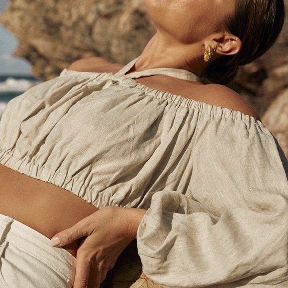 DISSH GINNY NATURAL LINEN CROP TOP Size 12
