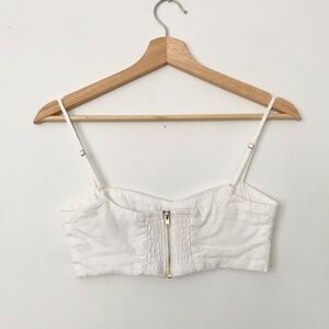 Stylish white crop top. Features thin straps. Perfect for summer.