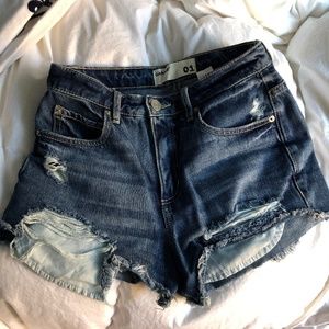 DISTRESSED HIGH RISE JEAN SHORTS