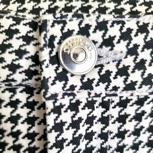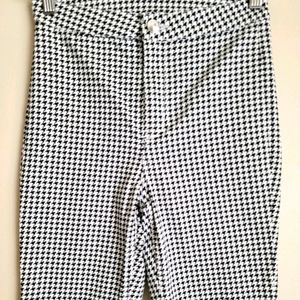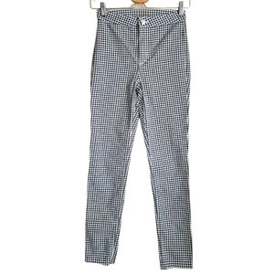 High waist, concealed, stretched and narrow legs with raw hem pants.