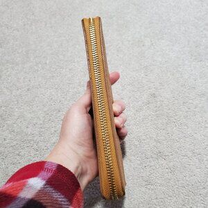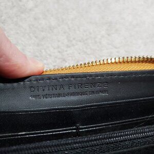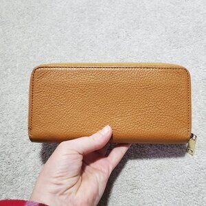 DIVINA FIRENZE Italian Leather Zip Around Wallet Pebble Mustard Gold 7.75 x 3.75