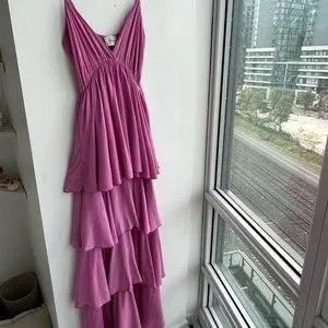BRAND NEW, italian designer, comes with tag - tag is off & only worn once to a wedding, colour is beautiful pink & satin material. V-neck & purchased at Maska Yorkville Village Toronto shop. Love the dress just don’t have space in closest.