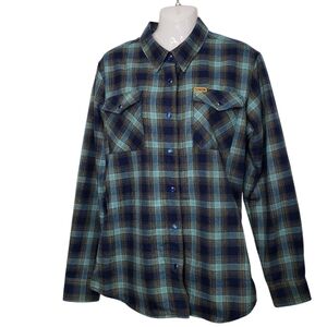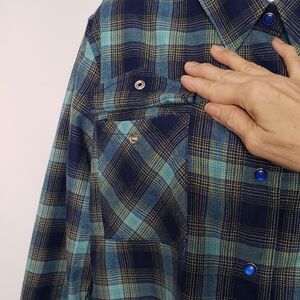 DIXXON The Pende Jo Blue Green Yellow Plaid Shirt Pearl Snap Close Women…