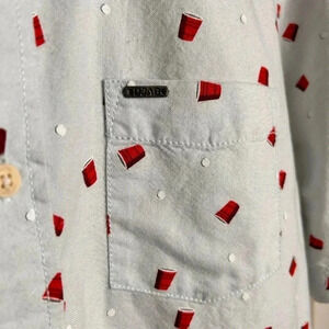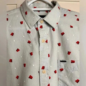 DJAB sold by La Maison Simons Medium button down cotton shirt with collar and a pop-art retro pattern of Solo Cups. This is the perfect Beer Pong shirt!!