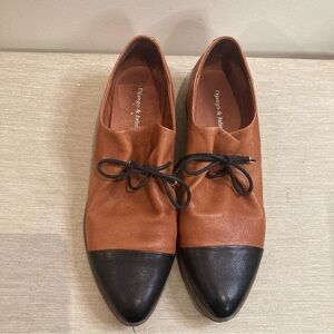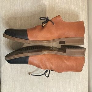 DJANGO & JULIETTE Sz 39 Kotty Leather Two Toned Colour Block Laces Pointy Flats